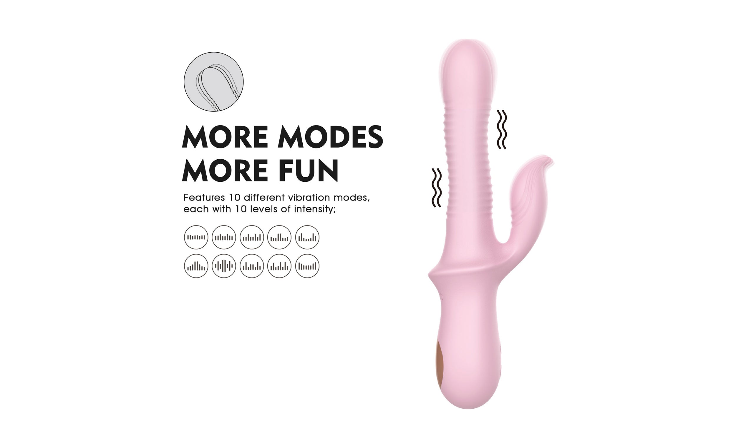 This silky, dual-stimulation vibrator features a rippling wave-motion shaft for deep G-spot massage and a curved clitoral stimulator for powerful external vibrations. Ergonomically designed for blended bliss, it’s your ticket to intense, customizable orgasms every time